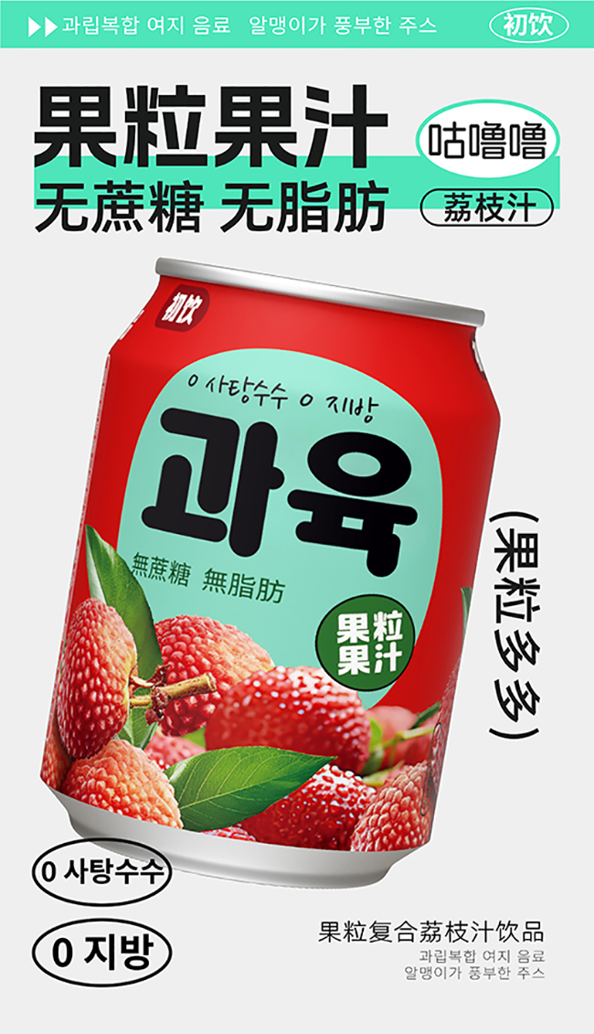 產(chǎn)品名:初飲荔枝果粒果汁238g