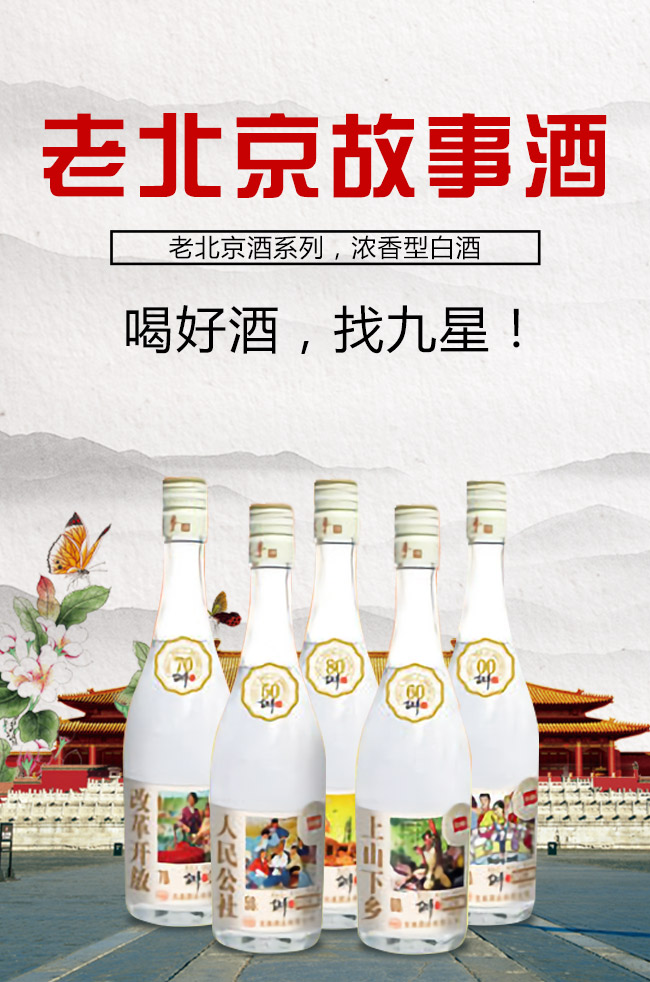 北京九星酒業(yè)有限公司是一家集產(chǎn)品研發(fā),生產(chǎn)銷售為一體的現(xiàn)代化白酒規(guī)模企業(yè)。目前開發(fā)的主要是皇城門系列白酒產(chǎn)品。是以優(yōu)質(zhì)高粱為主要原料,用大麥、小麥、豌豆制成大曲,輔多種微生物為糖化酵劑,再經(jīng)過長期發(fā)酵,緩慢蒸餾,取之精華,經(jīng)多年陳貯后,精心勾兌而成。以“清香幽雅,醇厚綿甜,尾昧爽凈”的獨特風格,深受各界朋友的青睞。
