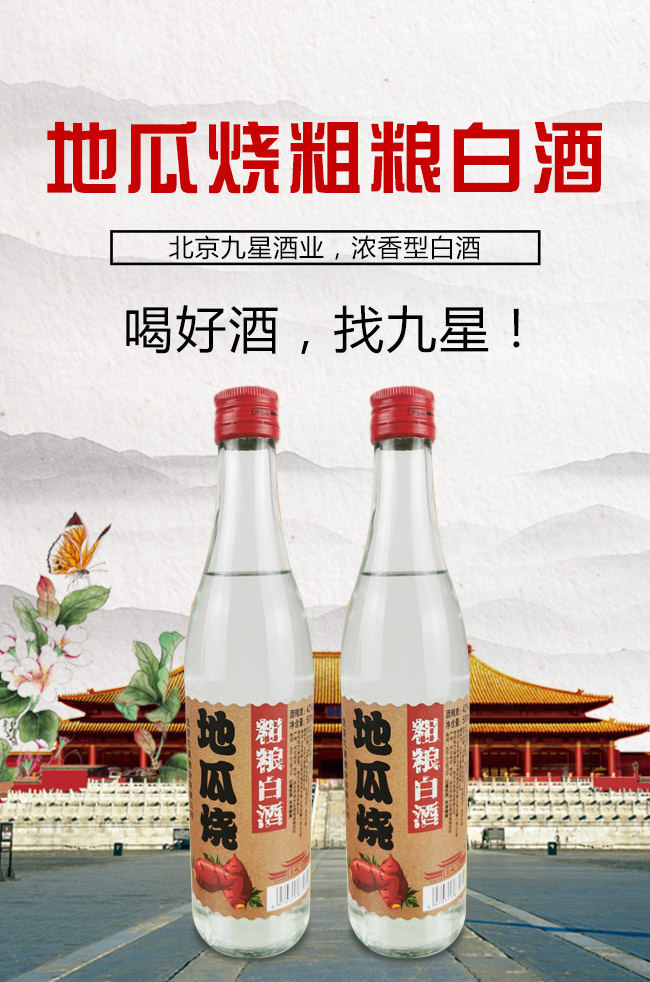 北京九星酒業有限公司是一家集產品研發,生產銷售為一體的現代化白酒規模企業。目前開發的主要是皇城門系列白酒產品。是以優質高粱為主要原料,用大麥、小麥、豌豆制成大曲,輔多種微生物為糖化酵劑,再經過長期發酵,緩慢蒸餾,取之精華,經多年陳貯后,精心勾兌而成。以“清香幽雅,醇厚綿甜,尾昧爽凈”的獨特風格,深受各界朋友的青睞。